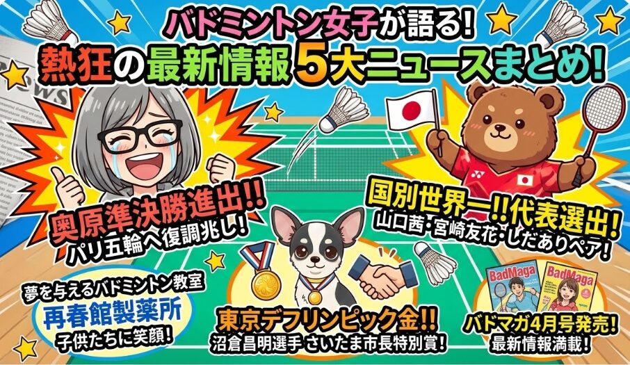 ああ、もう!今日のバドミントン界も話題が尽きないわね!私、日本バドミントンを愛してやまない一ファンとして、毎日のニュースに一喜一憂しているんだけど、今日の5つのニュースはどれもこれも熱すぎて、心臓がいくつあっても足りないくらい!奥原選手の復活の兆しから、次世代を担う若手の台頭、地域貢献活動、そしてデフリンピックの感動まで…本当に、バドミントンって奥深くて、魅力が無限大だと思わない?さあ、一緒に今日の熱いニュースを深掘りしていきましょう!
