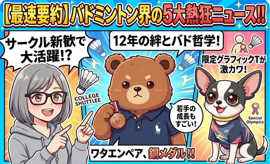 悠仁さまのバドサークル新歓、ワタエン銅メダル、ヨネックス限定ウェアまで!今週のバドニュース要約