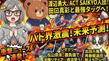 TOP 【2026/3最新】渡辺勇大がACT SAIKYO入団で田口真彩と最強ペアへ!志田千陽の退団、松山奈未の負傷…バド界に走る激震と未来予測